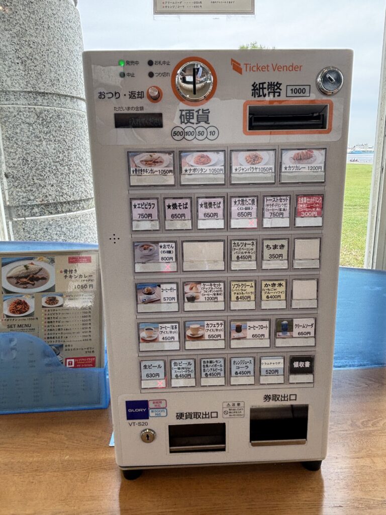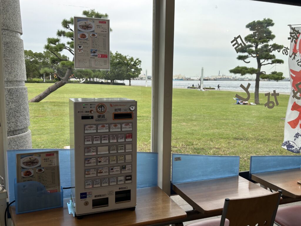 こちらの券売機は卓上型の小型券売機、中ボタンとミニボタンを組み合わせてます。」